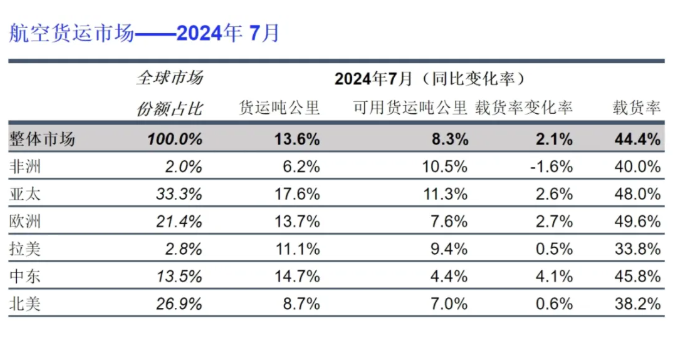 8月29日,国际航空运输协会(IATA,以下简称“国际航协”)发布2024年7月全球航空货运定期报告,7月航空货运需求持续强劲增长。航空货运需求&运力全球航空货运总需求,按照货运吨公里(CTK···